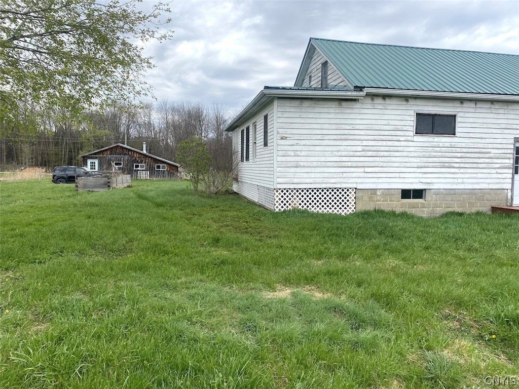 This Amish built home with a barn and a pole barn is located in Belfast NY, Allegany County. This country homestead has open views of the surrounding valley. A covered front porch welcomes you into the home where an open living and dining area features hardwood floors and natural light. The kitchen includes cupboard storage and countertop space. A first-floor bedroom adds convenience, along with an enclosed porch that works well as an office or sitting area. Upstairs, you will find an additional bedroom and an unfinished attic that offers storage or potential for more living space. The full basement includes a wood stove and has both interior and exterior access. The land consists of 6.25 acres and offers a yard suitable for recreation, fenced areas for horses or cattle, and a small water feature. Several outbuildings provide added function, including a large barn with stalls, a pole barn with a small office area previously used for a sawmill or lumber business, and another shop building with a wood stove. Electric is available at the driveway entrance. Located just a short drive to the Town of Belfast and the Genesee River where you can enjoy canoeing, kayaking, and fishing. This property offers potential for residential, seasonal use, or a business opportunity. All rights convey.